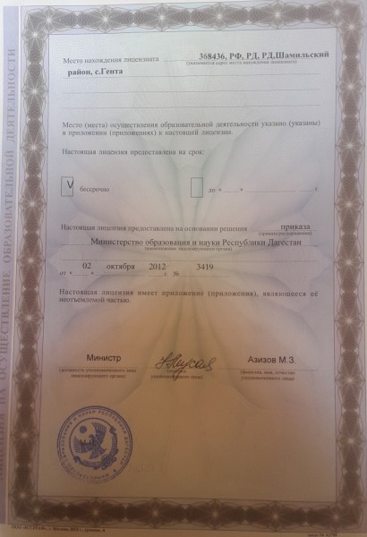 Адрес местонахождения образовательной организации* 368436, Республика Дагестан, Шамильский район , село Гента