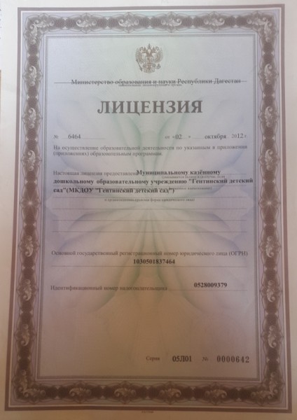 | Полное наименование образовательной организации* | Муниципальное казенное дошкольно образовательное учреждение"Гентинский детский сад" |