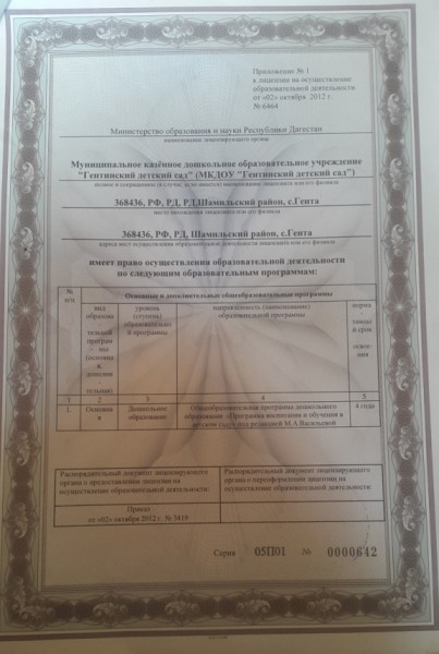| Сокращенное наименование образовательной организации* | МКДОУ "Гентинский детский сад" |